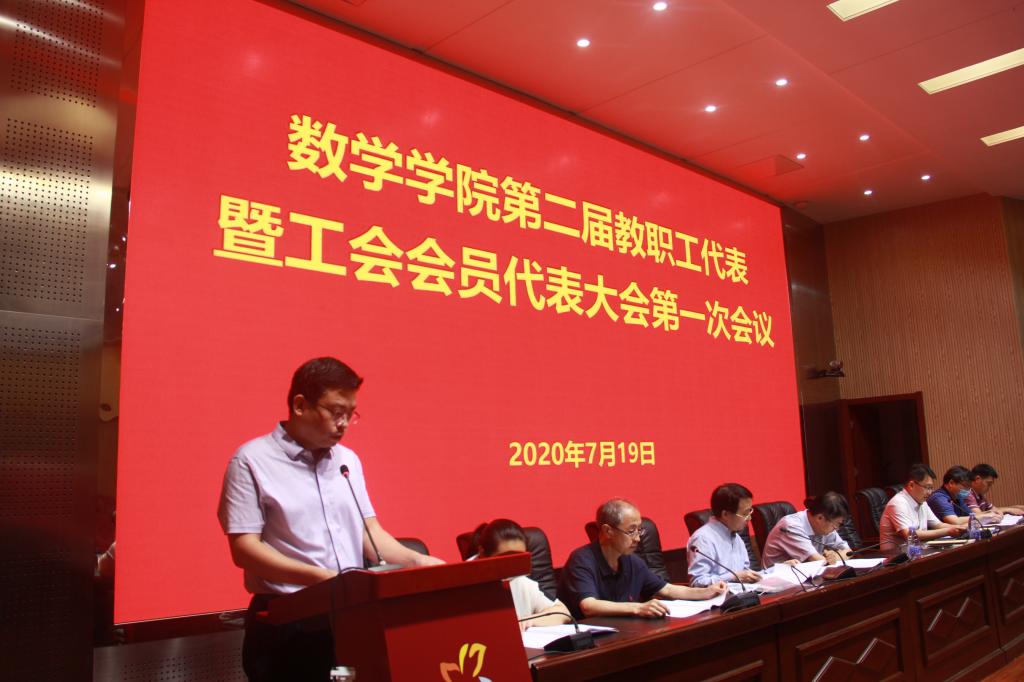 院长董焕河在大会上作了题为“凝心聚力,抢抓机遇,稳步推进学院新发展”的工作报告,全面回顾总结了学院过去四年的主要工作,客观分析存在的问题,部署了今后四年学院工作的主要任务。报告指出,过去四年,在学校党政的正确领导下,学院专业建设及教学水平显著提升,学科科研建设和研究生培养有所突破,人才队伍建设进一步加强,学生教育管理服务更加完善,对外交流合作不断深化,服务保障能力稳步提升,党建工作再上新高度。今后四年,学院将以习近平新时代中国特色社会主义思想为指导,全面贯彻落实党的十九大和十九届历次全会精神,紧紧围绕学校第三次党代会提出的“一二三八十”目标任务和思路举措,以“高质量的数学教育、高水平的数学学科、高标准的人才培养、高效能的社会服务”为发展目标,努力开创学院工作的新局面,推动各项事业再上新台阶、新水平。