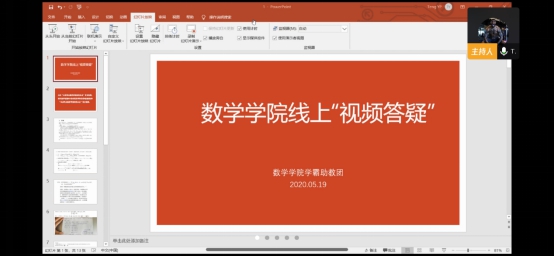 5月19日晚,学院学霸助教团在腾讯会议室举办了“视频答疑”活动。本次答疑活动由研究生助教王超和马淑慧针对本科生在居家学习中遇到的难题进行视频解答。