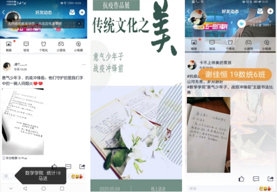 “你心目中的百年五四”,“疫情期间的最美逆行者”,学生结合主题,纷纷将自己的想法融入到书法作品中,为一线的医务工作者书写精彩人生,为祖国书写美丽篇章。此次活动,通过纸墨与百年前以及“抗疫”中的有志青年对话,不仅提高了学生人文素养,也激发了学生服务社会、奉献社会的工作热情。( 通讯员:姚禹辰 盖康 )