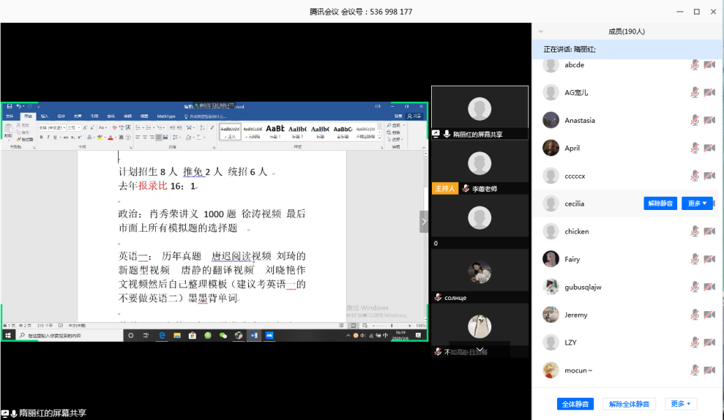 为帮助我院2017级本科生了解更多考研信息,明确考研目标,掌握备考技巧,3月6日,我院开展了一场特别的考研分享交流会,交流会通过腾讯会议以线上方式进行。2017级统计学、数统专业学生以及2018级、2019级200余名学生踊跃参加。