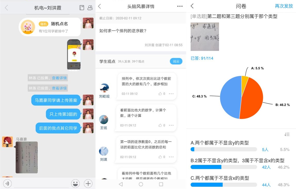 开学两周以来,每位老师都积极开展线上教学,每堂课给学生制定详细的课前导学、课中研学、课后督学方案,并在上课时间通过签到、随机点名、抢答等活动加强学生的学习过程监控,课后通过在线作业及考试检查学生的学习情况,并通过微信、QQ、学习通等方式随时解答学生的疑难问题。