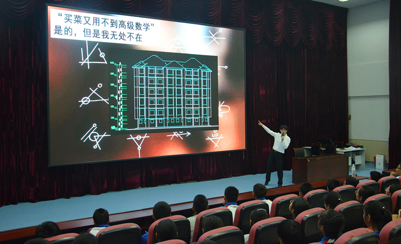 师生的到来表示感谢,对宣讲团学生的表现给予充分肯定,他用幽默的语言讲述了自己的数学故事以及他对数学的理解。