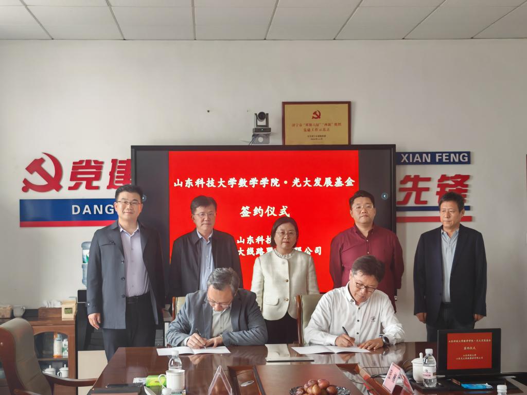 ·光大发展基金签约仪式在山东光大线路器材有限公司举行。山东科技大学党委常委、副校长徐龙飞,山东光大线路器材有限公司董事长兼总经理张辉及双方相关负责人参加了签约仪式。