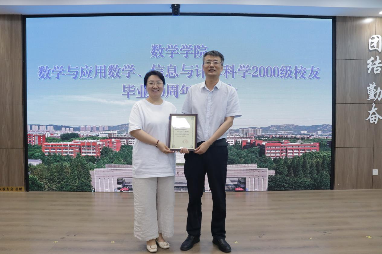 董焕河为校友代表颁发了捐赠证书,并向校友介绍了学院的基本情况及发展历程。他指出,校友是一所高校最宝贵的财富,校友们取得的每一份荣誉、贡献的每一点智慧、付出的每一滴汗水,都使学校和学院更加行稳致远。他希望校友们能够不忘初心,继续努力,以更好的成绩为母校争光、为学院添彩,也欢迎校友们能够常回母校看看。