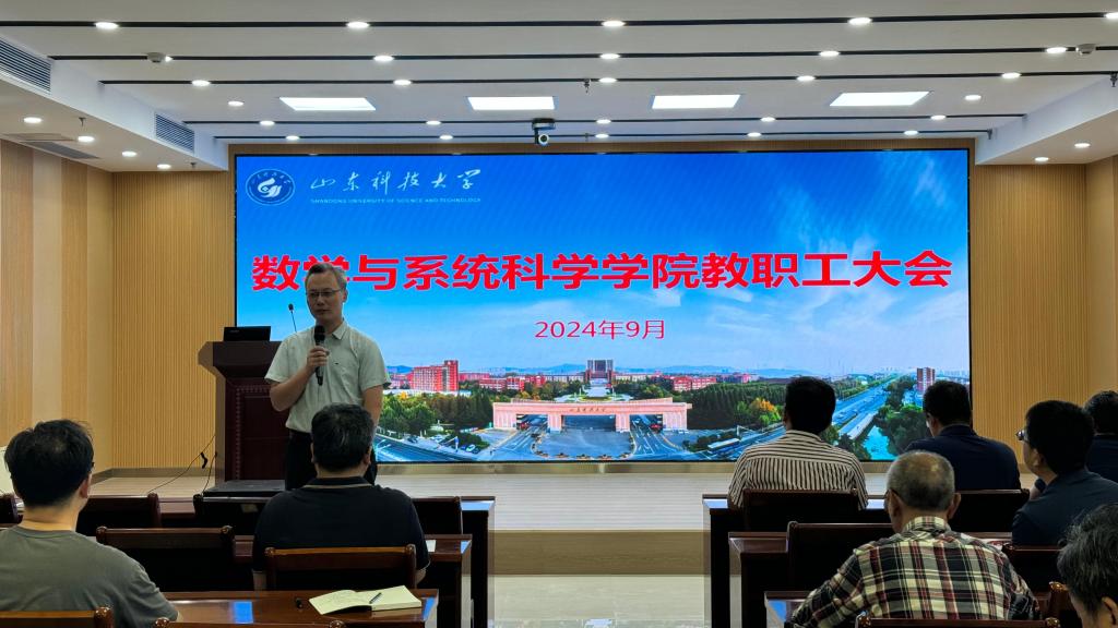 在工程实训大楼1603会议室组织召开全体教职工大会,会议由学院党委书记贾红果主持。