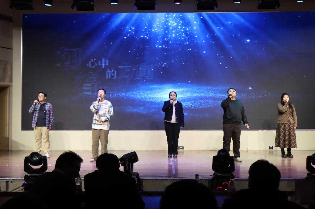 在第一篇章“数启新程绽芳华”中,王新萍、何家乐深情对唱《记得》,相慧君、赵晨演绎《不鼓自鸣》触动心弦;舞蹈《巴啦啦小魔仙+甜心格格》则尽显大学生青春活力。李欣越老师以其独特的嗓音深情演绎了《像我这样的人》,赢得了在场师生的阵阵掌声与喝彩。