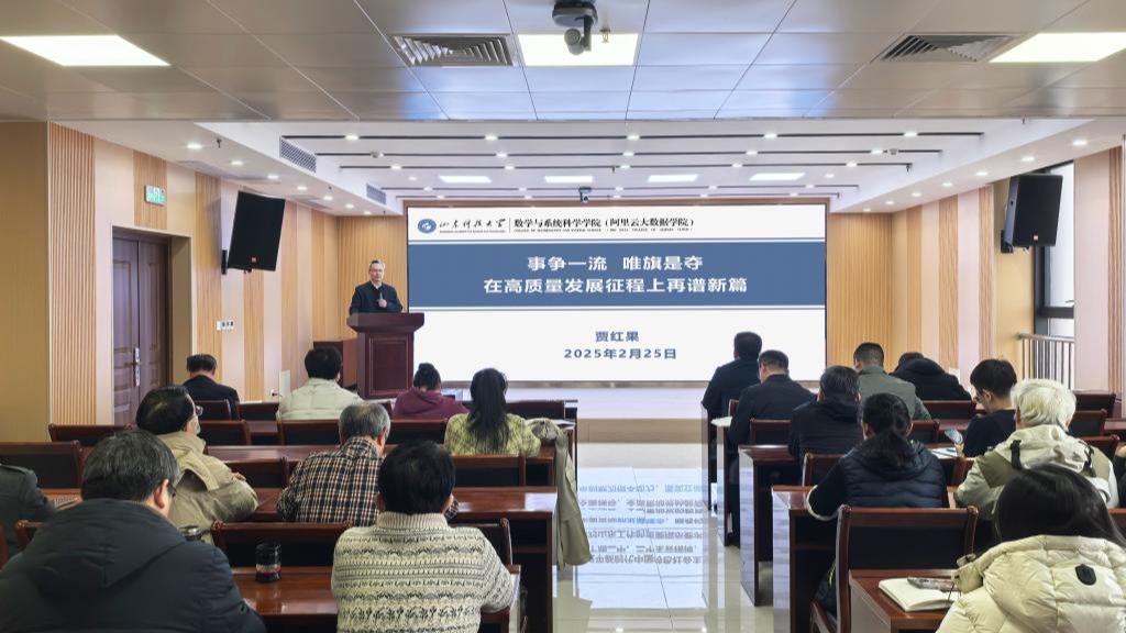 会上, 院长董焕河讲话时强调,要严守安全底线,切实保障人身财产安全,规范网络言行,恪守职业行为准则,筑牢意识形态防线;要着力深化教学改革,推动组建高水平教研团队,强化协同创新机制,实现高层次教学成果奖的突破;要拓展国际化视野,聚焦数学前沿领域,力争在科研项目、科技报奖及顶级期刊等方面申报大项目、产出大成果。最后,他强调,全体教职员工要以“功成不必在我,功成必定有我”的信念,将个人职业发展与学院战略规划深度融合,共同谱写事业发展新篇章。