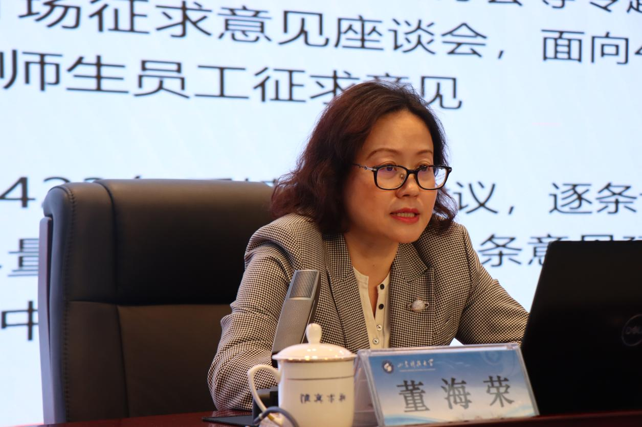 最后,董海荣就推动党代会精神落实见效提出要求,号召师生积极行动起来,抓好大会精神学习宣传,确保会议精神入脑入心;聚焦任务推动落地落实,对标对表,科学谋划下一步工作,领导干部要带头示范,教师要坚守育人初心,同学们要积极投身社会实践;联系实际做好结合文章,将学习党代会精神与落实中央决策部署、省委工作要求和学校一流学科建设推进会精神等紧密结合,破解发展难题,加压奋进、争创一流,推动学校高质量跨越式发展。