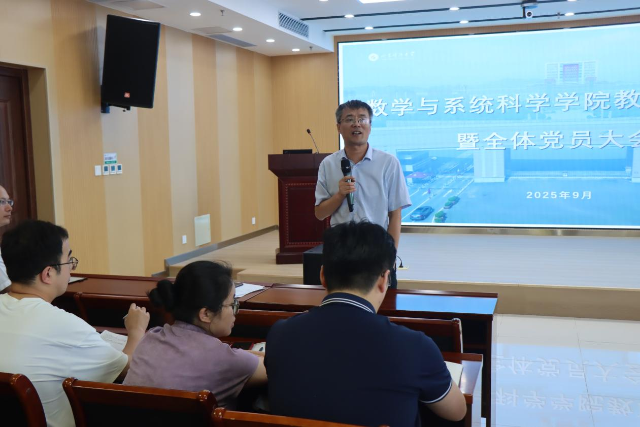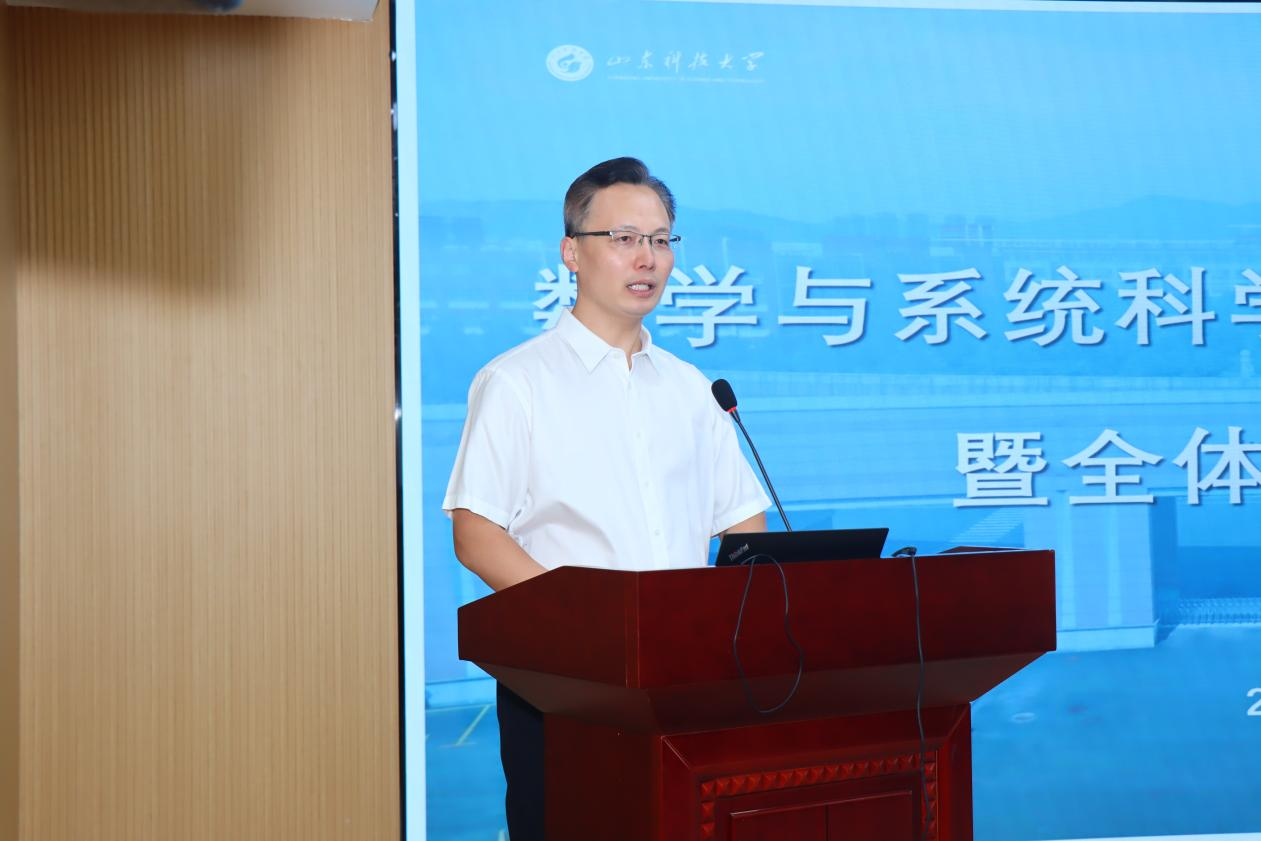 院长董焕河发表讲话,他指出,学院在上半年的工作中已取得显著成果,全体教职工仍需持续奋勇前行,全力争取在“大项目、大论文、大成果”方面实现新突破。他强调,全院要进一步强化对教学工作的重视,全力培育、争取各类教学成果奖项,提升教学质量与影响力;要深化青年教师的培养机制,精准对接其成长需求,助力青年教师快速成长;要紧密关注学科前沿与行业动态,以开放创新的思维和与时俱进的姿态,紧跟时代发展潮流,为学校“冲一流”建设贡献数学智慧。