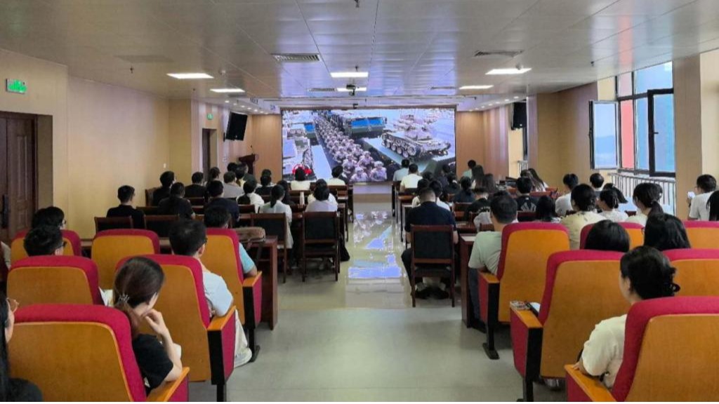 党委于工程实训中心1603报告厅组织师生集中观看纪念中国人民抗日战争暨世界反法西斯战争胜利80周年大会直播,同上一堂生动珍贵的“大思政课”。