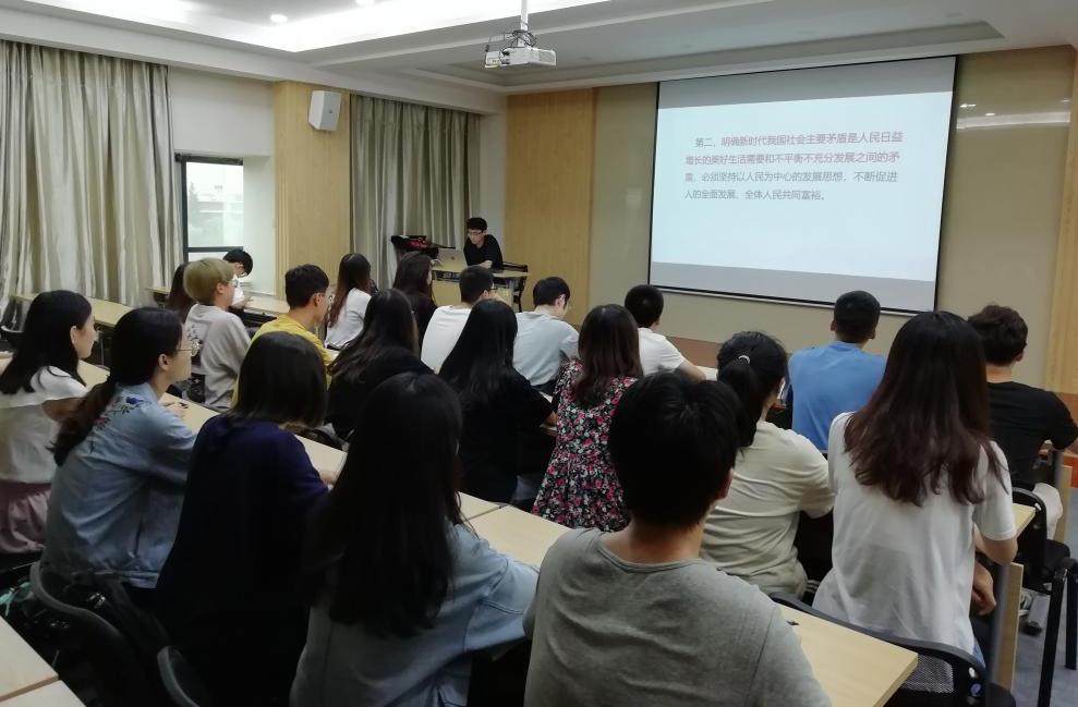 潘志航从“开拓中国特色社会主义更为广阔的发展前景”、“党和国家事业的历史性成就和历史性变革”、“夺取新时代中国特色社会主义伟大胜利”三个方面带领同学们进行了学习,他希望广大党员保持勤俭节约、艰苦奋斗的作风,以时不我待、只争朝夕的精神,奋力走好新时代的长征路。牛依山介绍了习近平新时代中国特色社会主义思想这一马克思主义中国化最新成果的重大理论意义和实践价值,号召同学们要始终坚持以习近平新时代中国特色社会主义思想武装头脑、指导实践,志存高远、脚踏实地,努力在实现中国梦的伟大实践中放飞青春梦想、书写人生华章。