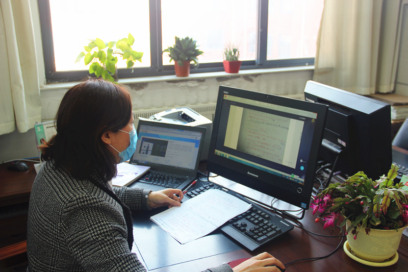 网络“直播间”,见刘洪霞老师正在进行《线性代数》网络教学,罗书记就在一旁驻足,“随堂”一起听课。看到刘老师精心的教学设计,活跃的课堂气氛,罗书记表示非常赞赏。随后,数学教研部主任、高等数学教学团队负责人赵文才教授向罗书记汇报了《高等数学》、《线性代数》等课程开展线上教学的总体情况。2019年,团队主讲教师利用节假日,录制微课、慕课350余集,制作配套PPT、线上作业多套。同时在教学过程中开展对比教学实验,通过录播、直播、讨论互动、推送资料、在线答疑、作业批改等多种方式开展线上教学活动,同时进行了线上考核+试卷考核的有益尝试。为保证高等数学教学效果,学院还健全了研究生助教制度,成立学霸助教团辅助主讲教师开展工作,有效保障了教学工作的实施。在听到我院前期已进行了扎实的课程建设和混合式教学探索,罗书记对我院未雨绸缪加强信息化建设为战“疫”期间的线上教学保驾护航给予了充分肯定和高度评价。罗书记鼓励大家迎难而上,敢于担当,激发线上教与学的活力,保证教育、教学质量,并对所有在岗老师的辛勤付出表示感谢。