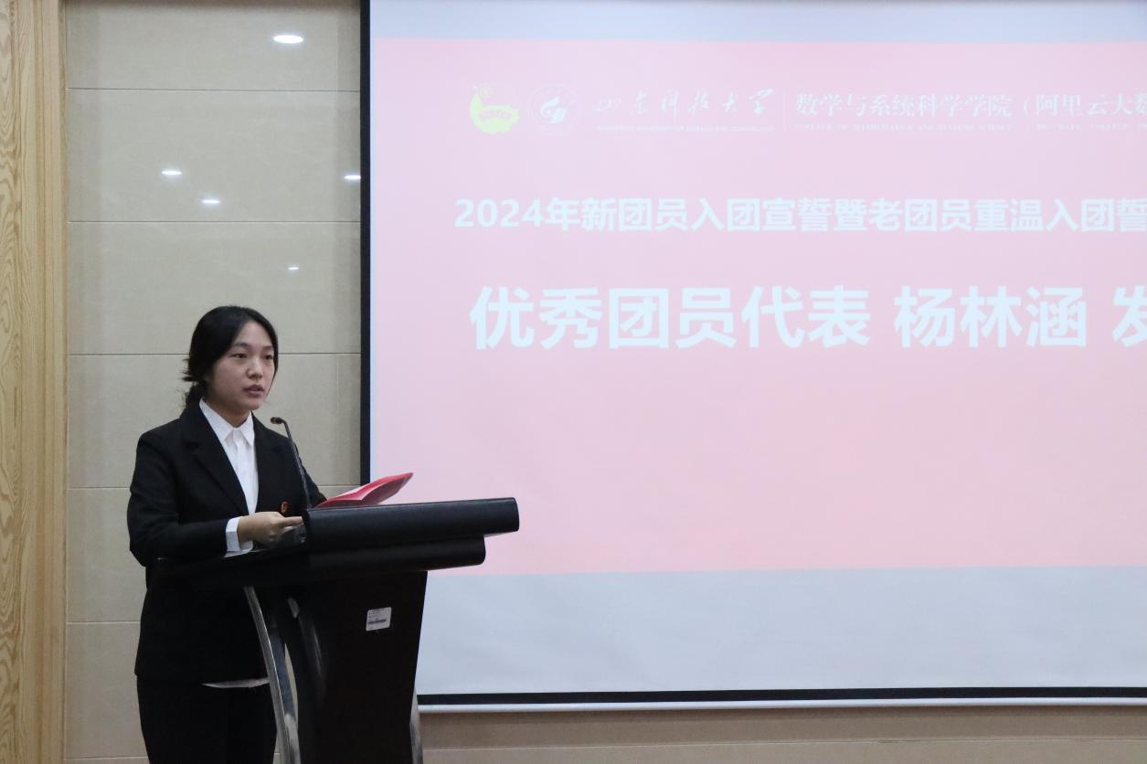 统计专业2023级1班邢晓凤作为新团员代表发言,她表示非常荣幸能够加入中国共产主义青年团,并号召新团员在今后的日子里严于律己,勤奋学习,用铿锵步履践行“强国有我,请党放心”的铮铮誓言。统计专业2022级2班杨林涵作为优秀团员代表发言,她鼓励新团员们要接过时代赋予的“接力棒”,勇当时代“主角”,追随信仰之光、扛起历史之责、不负时代之望,奋力书写为中国式现代化挺膺担当的青春篇章。