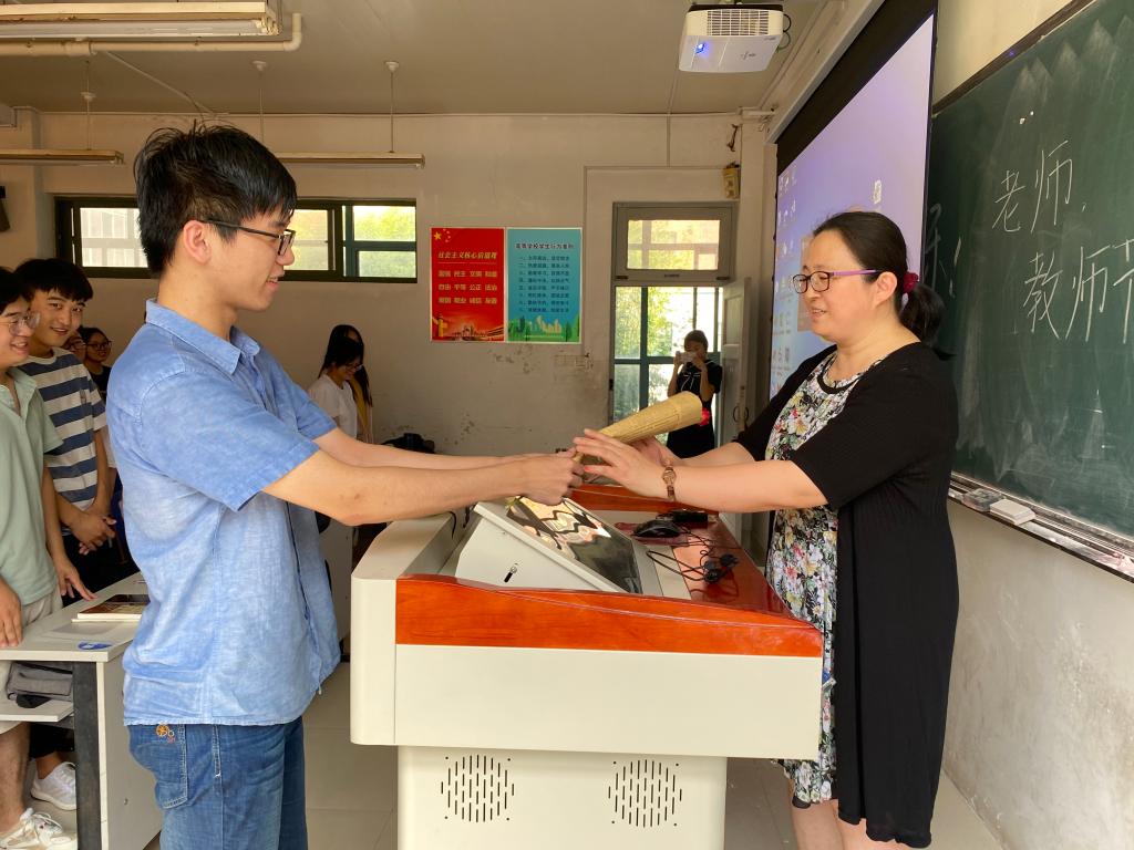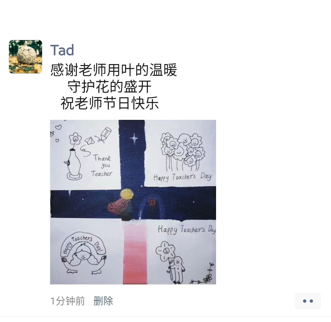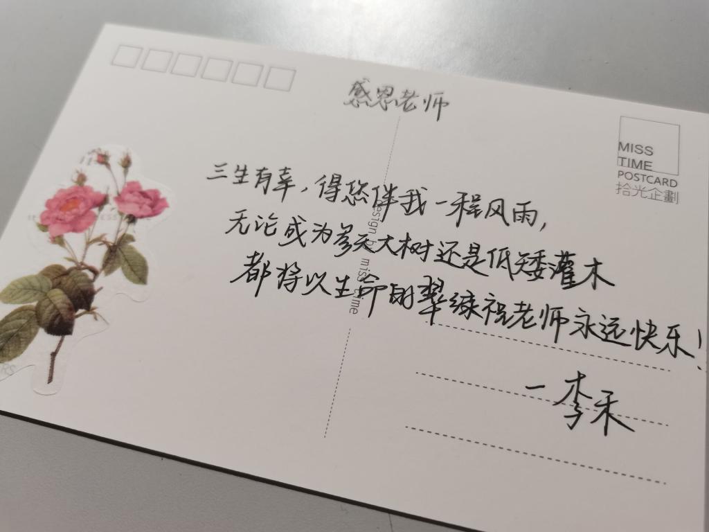 “将对您的爱写到每一个数字里,厚积起来,直到无法收敛”“感谢老师用叶的温暖,守护花的盛开,祝老师节日快乐”,很多学生在自己的朋友圈、个人空间里分享着“三行情书”,纸短情长,诉说感恩。