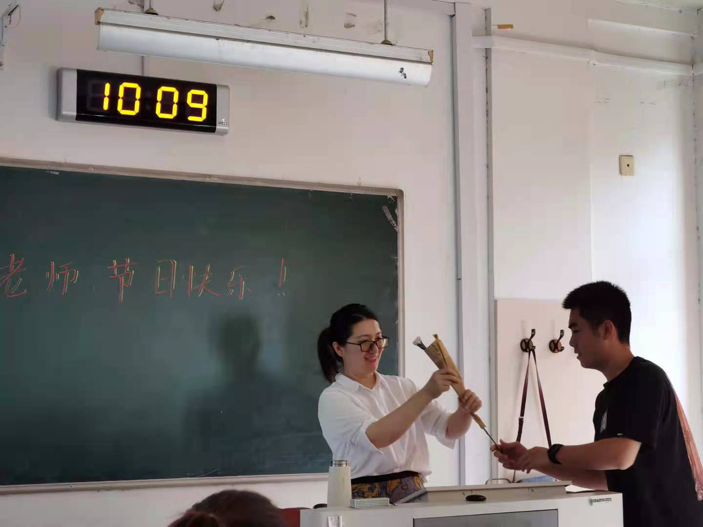 “老师好!您辛苦了!祝您节日快乐!”伴随着清晨的上课铃声,数院学子深情的告白在教室里传递开来,黑板上提前写下的祝福语,偷偷准备好的康乃馨,还有老师们脸上洋溢着的甜甜的笑容,让这个普通的早晨变得格外温馨。