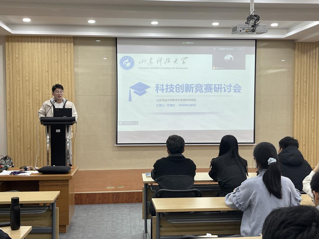 培训会上,代佳庆详细讲解了大学生科技创新竞赛类别等级,就“挑战杯”“互联网+”“全国大学生数学建模竞赛”及“全国大学生市场调查与分析大赛”等赛事从比赛背景、参赛条件、参赛要求及学院历届参与获奖情况等方面进行了重点分析,鼓励同学们在大学期间要科学制定好自己的学业生涯规划,积极参与科研项目和科创竞赛,提升科学素养和探究能力。