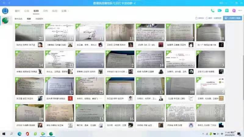 在挑战赛组队打卡活动中,参加的同学在QQ群以小组为单位建立群相册,将日常学习笔记发布到群相册中进行每日打卡,为期五天的活动共吸引了300余名同学的参与,进一步巩固提升了同学们的数学建模理论学习能力。