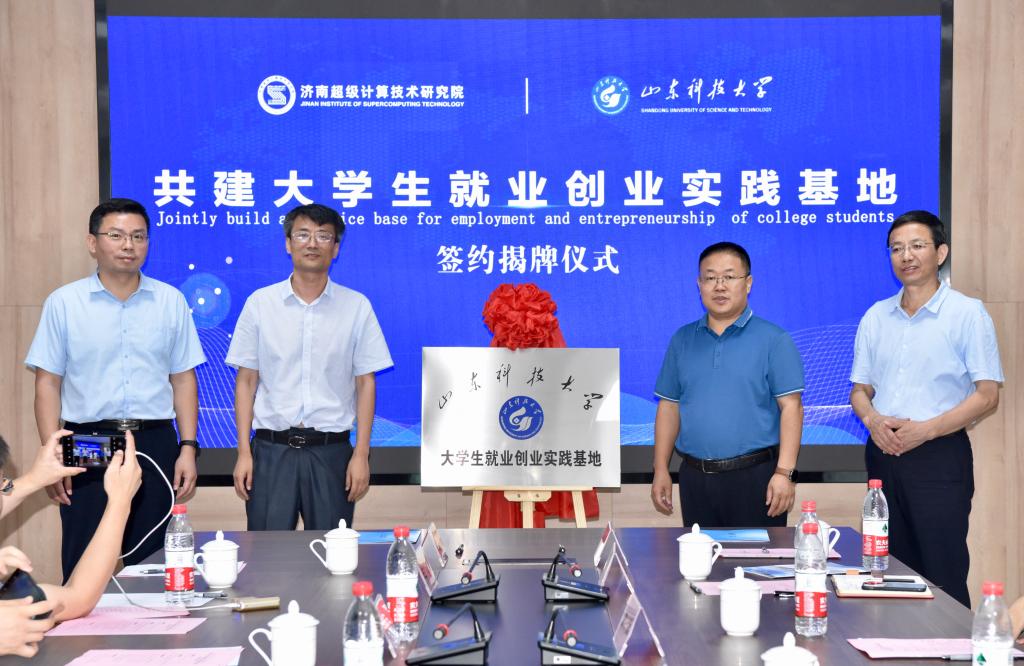 7月10日,比分网足球-竞彩足球比分网 与济南超级计算技术研究院签署大学生就业创业实践基地共建协议。齐鲁工业大学(山东省科学院)原副校(院)长贺国平,济南超级计算技术研究院院长潘景山、产学研合作部部长郭猛、综合办公室主任杨佰才,山东科技大学比分网足球 党委书记徐明磊、院长董焕河,学生工作部副部长孔环等人出席签约仪式。徐明磊、潘景山代表双方签约。贺国平、徐明磊、董焕河、潘景山代表双方为“山东科技大学大学生就业创业实践基地”揭牌。